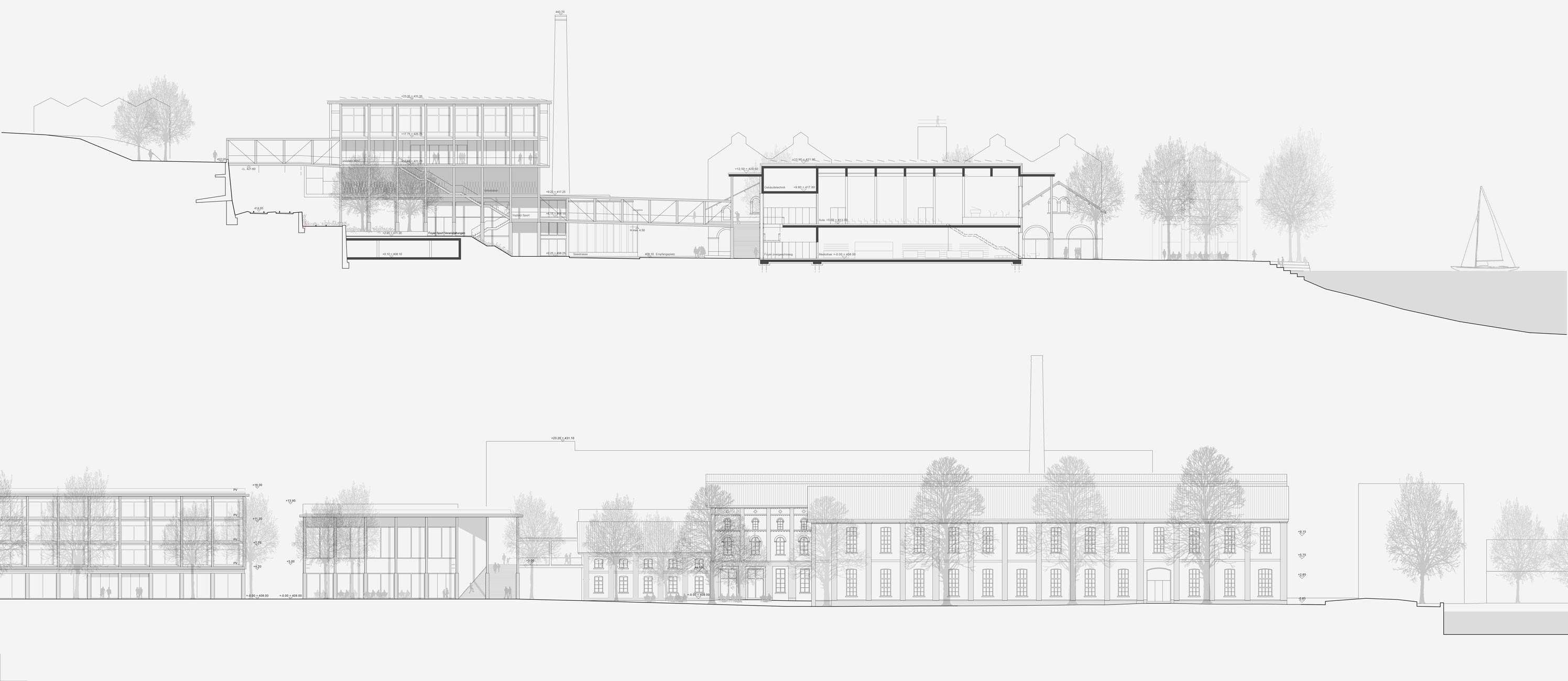 Mit der Transformation des CU-Areals in ein lebendiges Stück Stadt erhält Uetikon erstmals die Gelegenheit, sich tatsächlich «am See» zu etablieren. Auf «Seeebene» entsteht am Fusse des Pfannenstielhangs eine uferparallele Bänderung von Uferpark und einer Bebauung aus umgenutzten ehemaligen Industriegebäuden und Neubauten. Park, Bebauung und Nutzer profitieren dabei von den reichen Spuren und Relikten der Vergangenheit.