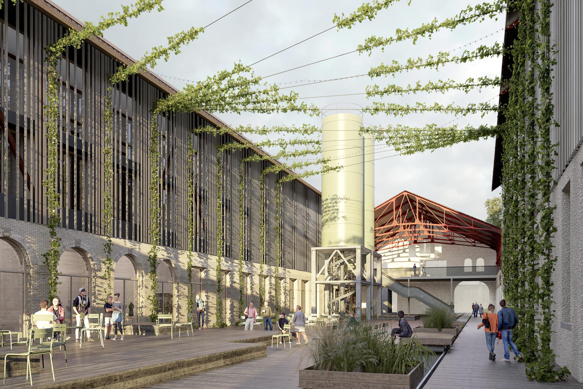 Ebenso unverkrampft ist der Einsatz von mobilen, schienengebundenen Sitz- und Pflanzelementen, den Waggons. Die bestehenden und auch künftig belassenen Schienenstränge des Fabrikareals nutzend, können auf Waggonfahrgestellen aufbauende Holzpodeste sowie Pflanztröge mit Ruderalvegetation auf dem Areal verschoben und je nach Bedarf verteilt oder auch – bei entsprechendem Platzbedarf – beiseite geräumt werden. Als nicht statische Elemente verändern sie das Erscheinungsbild von Mal zu Mal und könnten auch den künftigen Uferpark in seiner ganzen Länge bespielen.