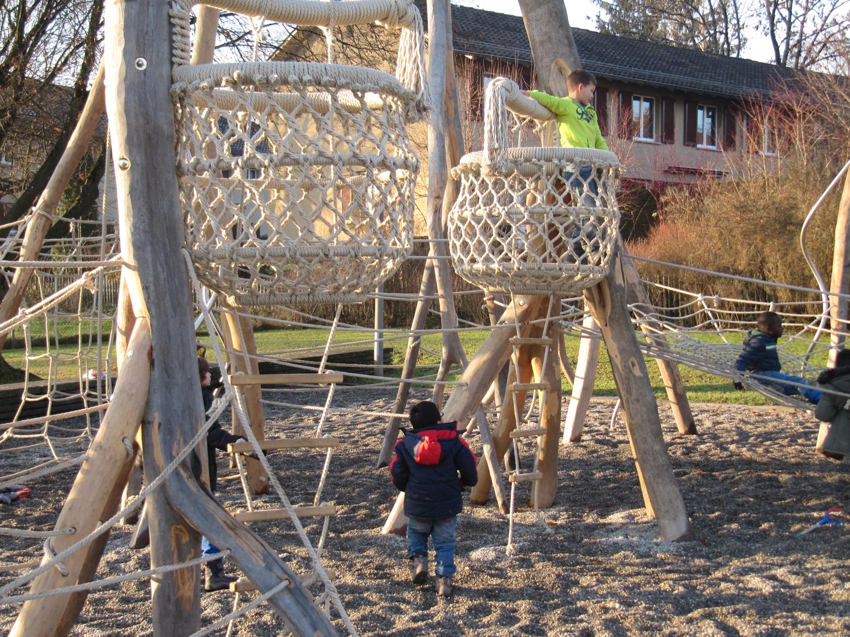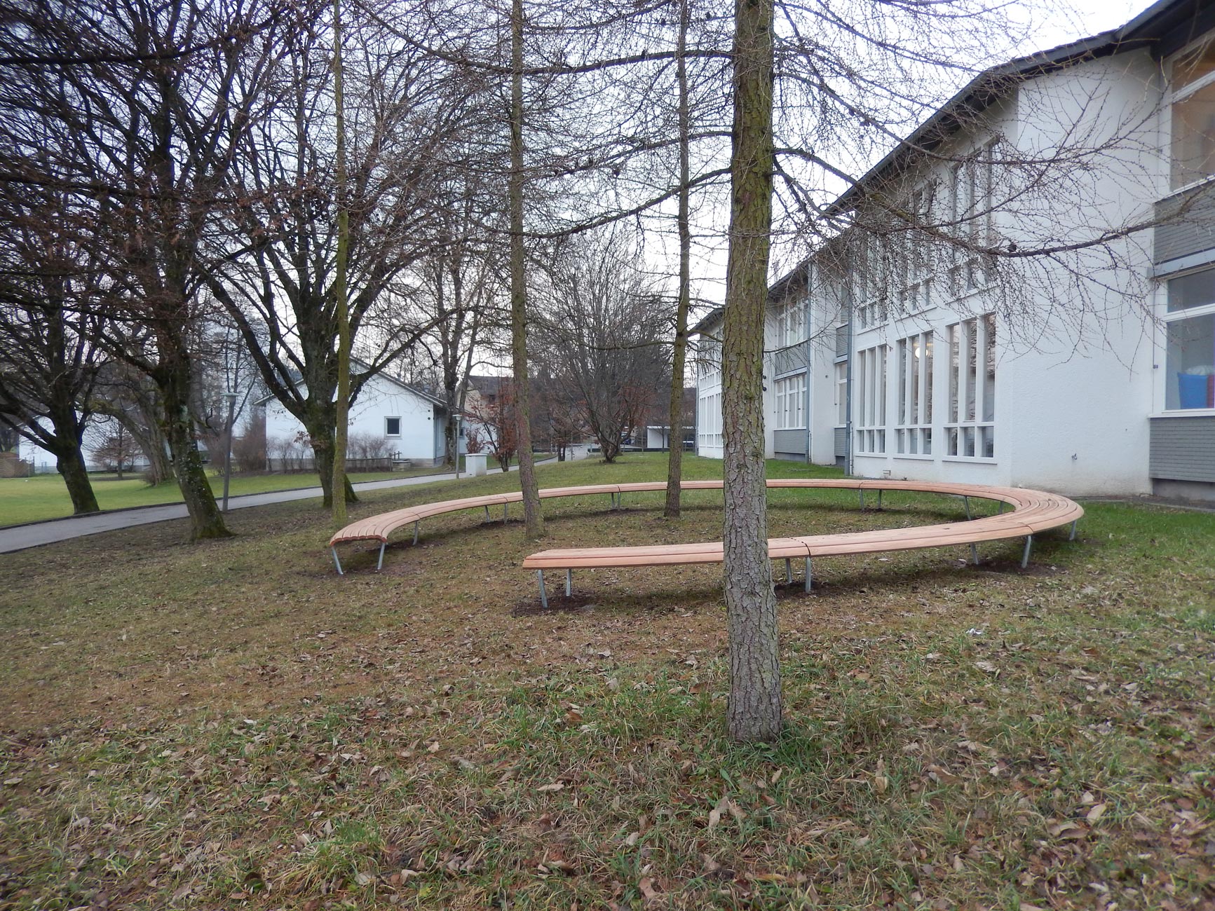 Weitere Interventionen ist eine grosse Rundbank im Baumbestand als Klassenzimmer im Freien und ein neues Sandpielfeld für den Kinderhort.