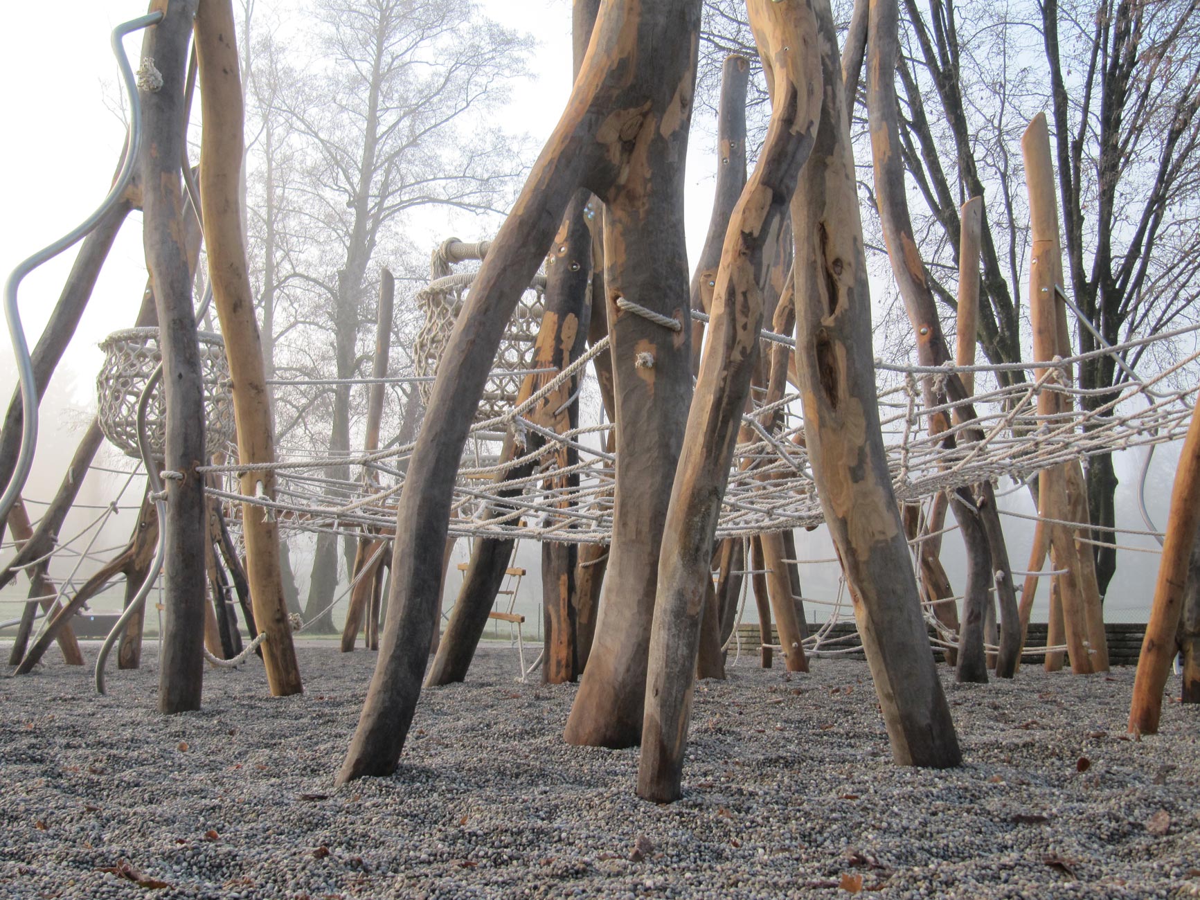 Als Dschungel ist in Zusammenarbeit mit einem Spezialisten ein einzigartiges Mangroven-Dickicht aus „kopfunter“ eingebauten Robinienkronen entstanden, das vielfältige Spiel- und Erfahrungssituationen bietet, ohne auf eine klassische Instrumentierung zurückzugreifen. Für die Schul- und Hortkinder gibt es viel auszuprobieren und Freiraum für die eigene Phantasie.